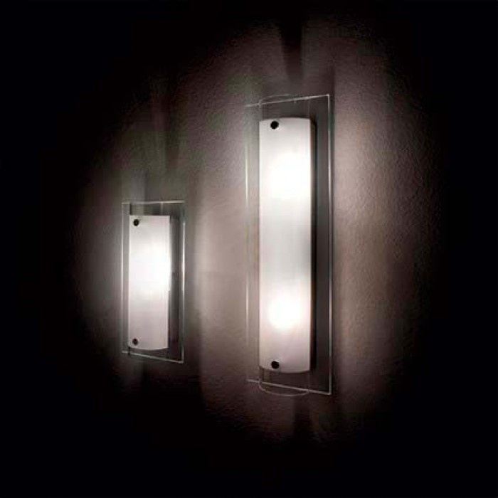 Основа из металла с хромовым покрытием. Рассеиватель из прозрачного стекла с фацетной огранкой и прозрачной трубки пескоструйной обработки в центральной части. Закрепляющие стекло винты в хромовом покрытии.