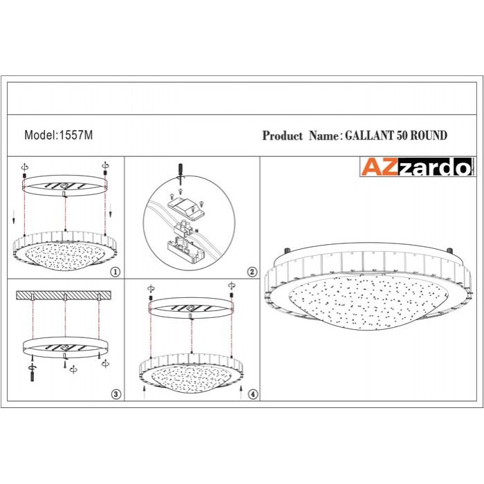 Изделие польской торговой марки Azzardo имеет степень влагозащиты - IP20, что разрешает эксплуатировать в жилых помещениях.