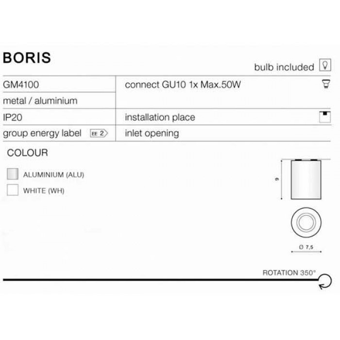 Изделия завода Azzardo можно купить в интернет магазине светильников Мир Света. Точечный светильник серии Boris имеет нестандартный вид, такое изделие устанавливают в офис, в кафе и рестораны, а также для помещений в стиле современный. Источников света в приборе - 1шт, мощностью 50Вт, цоколь типа GU10.Azzardo Boris (gm4108-bk) сконструирован из надежных материалов: алюминий, металл.