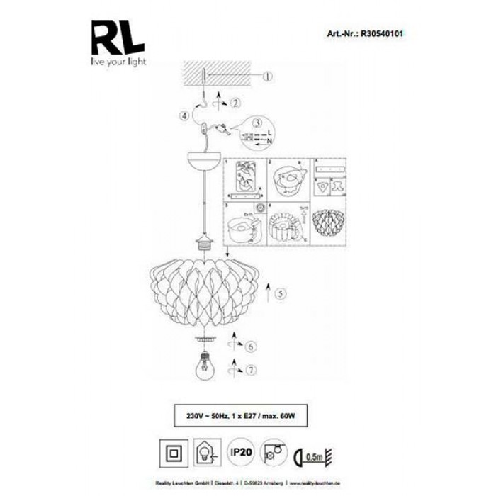 Изделие немецкой фабрики REALITY имеет степень влагозащиты - IP20, что разрешает использывать в жилых комнатах.
