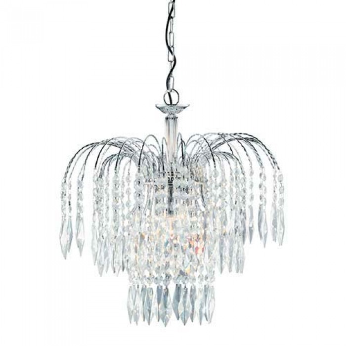 Светильники торговой марки Searchlight можно подобрать в интернет магазине mir-sveta.kiev.ua. Подвес серии Waterfall имеет хорошее соотношение цена-качество, такой источник света вибирают в кафе и рестораны, в коридор, а также для помещений в стиле хрусталь. Источников света в световом приборе - 3шт, мощностью 60Вт, цоколь типа E14.Searchlight 4173-3 Waterfall сконструирован из качественных составляющих: металл, хрусталь.