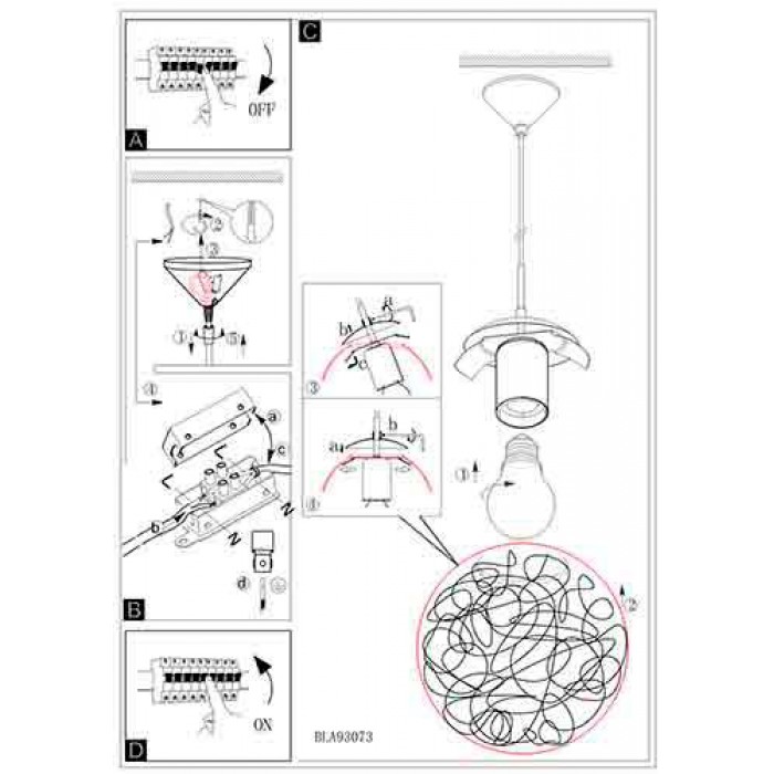 Класс энергоэффективности : Светильник совместим с лампами всех классов с А++ по Е, поставляется без ламп