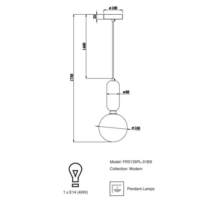 Источник света: 1шт x 40Вт (E14).