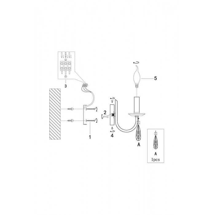 Источник света: 1 x E14 (40Вт), приобретаются отдельно