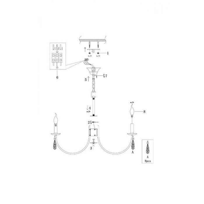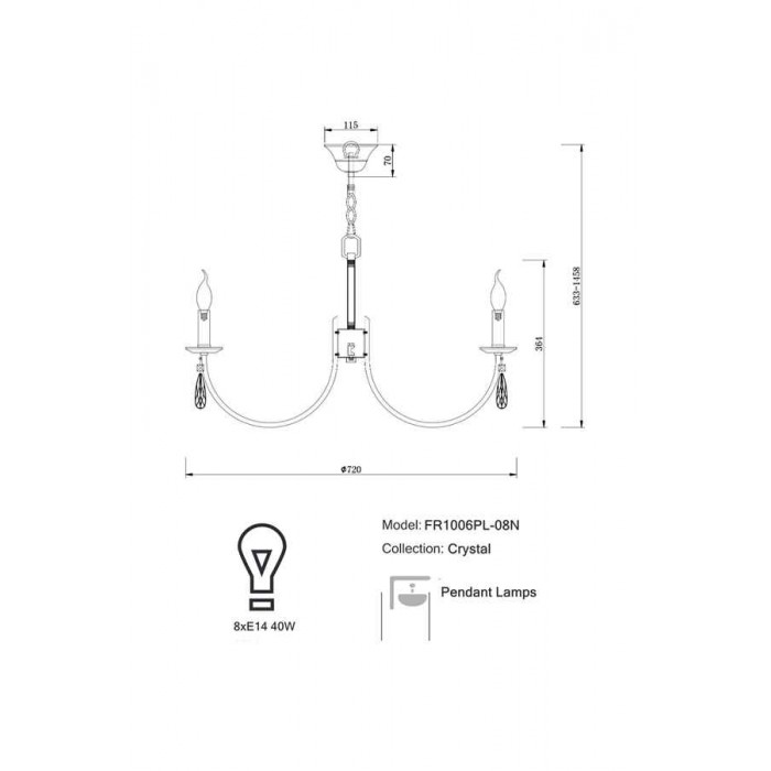 Источник света: 8 x E14 (40Вт), приобретаются отдельно