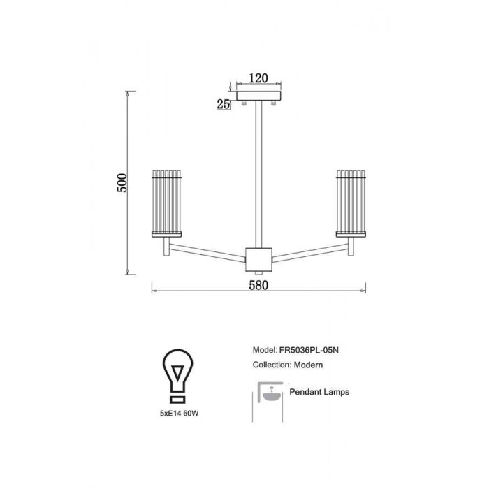 Источник света: 5 x E14 (60Вт), приобретаются отдельно