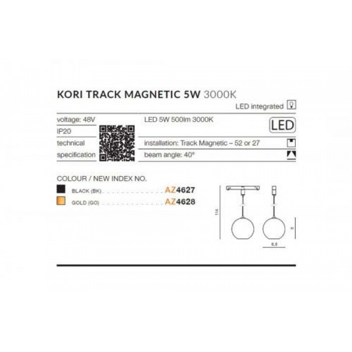 Описание Azzardo KORI TRACK MAGNETIC 5W 3000K GO AZ4628: