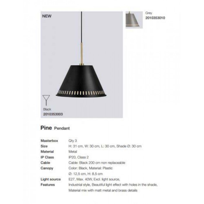 Товары завода Nordlux можно подобрать в магазине Мир Света. Подвесной светильник серии PINE имеет лаконичный дизайн, такое изделие подходит кафе и рестораны, спальню, а также для помещений в стиле лофт, модерн. Количество источников света в приборе - 1шт, мощностью 40Вт, цоколь типа E27.