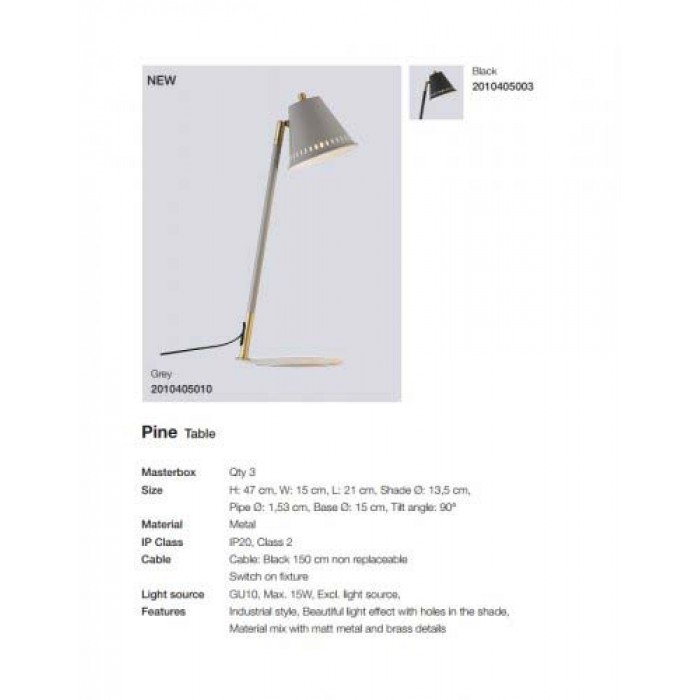 Товары производителя Nordlux можно заказать в интернет магазине освещения Мир Света. Настольная лампа серии PINE имеет хорошее соотношение цена-качество, такой источник света вибирают спальню, кабинет, а также для помещений в стиле лофт, модерн. Количество источников света в изделии - 1шт, мощностью 15Вт, цоколь типа GU10.