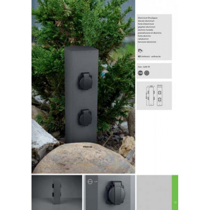 Уличный столбик с розетками Trio GARDEN SOCKET 9964-42 выполнен из качественных материалов: алюминий, металл.