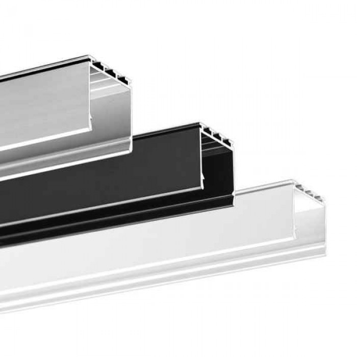Алюминиевый накладной профиль для светодиодной ленты. Предназначен для монтажа на поверхность или, с помощью тросовых элементов, на подвесах.