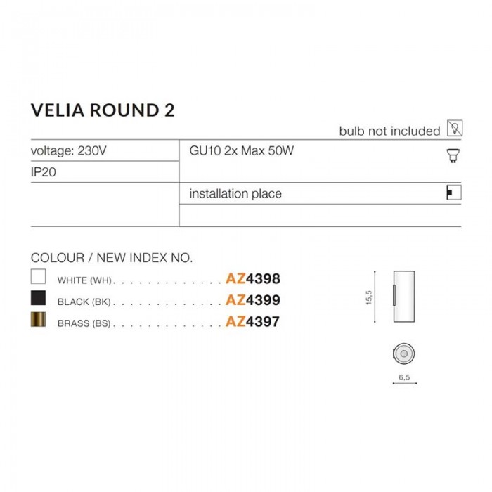 Продукцию компании Azzardo можно подобрать в интернет магазине светильников Мир Света. Декоративная подсветка серии Velia имеет нестандартный вид, такой световой прибор вибирают для прихожей, для коридора, а также для помещений в стиле модерн. Источников света в световом приборе - 2шт, мощностью 50Вт, цоколь типа GU10.Декоративная подсветка Azzardo AZ4399 Velia произведен из экологичных компонентов: металл.