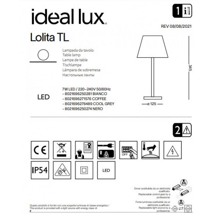 Изделия бренда Ideal Lux можно приобрести в интернет магазине светильников mir-sveta.kiev.ua. Настольная лампа серии Lolita имеет очаровательный вид, такое изделие подходит для экстерьера. Лампочек в светильнике - 1шт, мощностью 7Вт, цоколь типа LED. Световой поток составляет - 330лм . Температура свечения - 3000K.Настольная лампа Ideal Lux 276489 Lolita TL Cool Grey, 7 Вт, 330 лм, 3000K состоит из качественных материалов: металл, пластик.