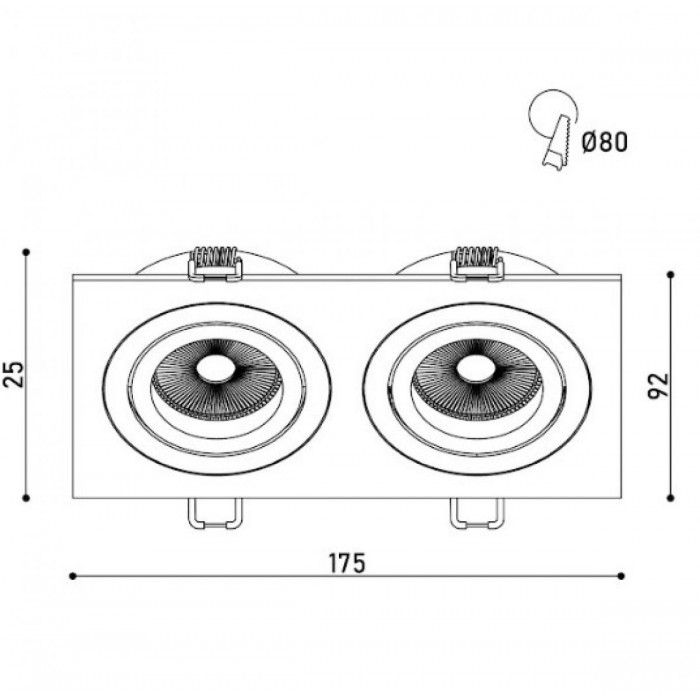 Размеры KLOODI KD-BASE SQ92x175 GU10 BK