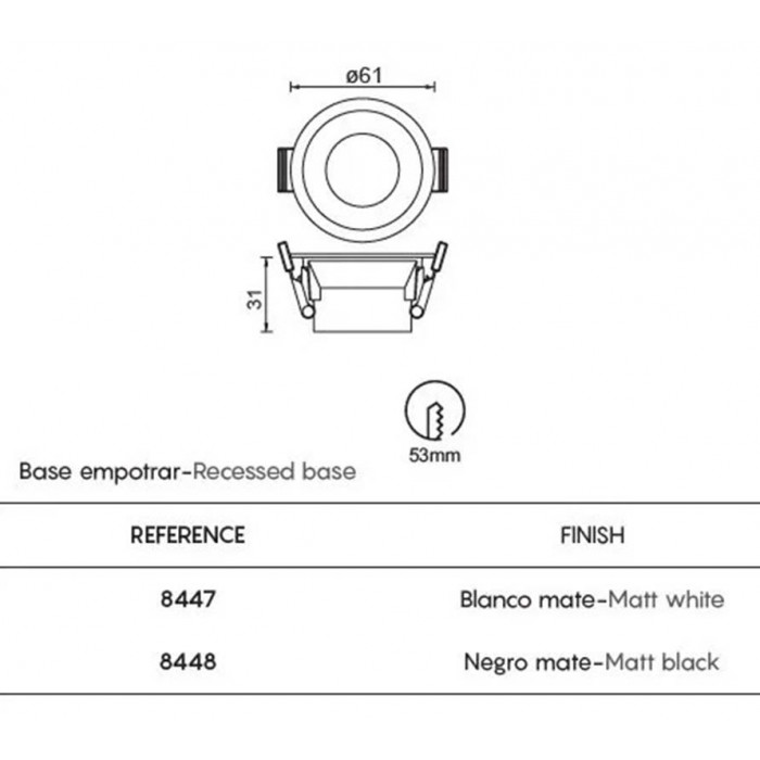 Ассортимент компании Mantra можно подобрать в магазине освещения Мир Света. Врезной светильник-база серии Trimasi имеет оригинальный дизайн, такой источник света устанавливают коридора, гостиной.Врезной светильник-база Mantra 8447 Trimasi сконструирован из долговечных материалов: металл.