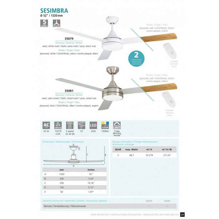 Световые приборы бренда Eglo можно выбрать в магазине светильников Мир Света. Люстра-вентилятор серии Sesimbra имеет очаровательный дизайн, такое изделие оформляют в кабинет, в коридор. Лампочек в приборе - 1шт, мощностью 20Вт, цоколь типа LED. Световой поток составляет - 1936лм. Цветовая температура - 3000-6500K.