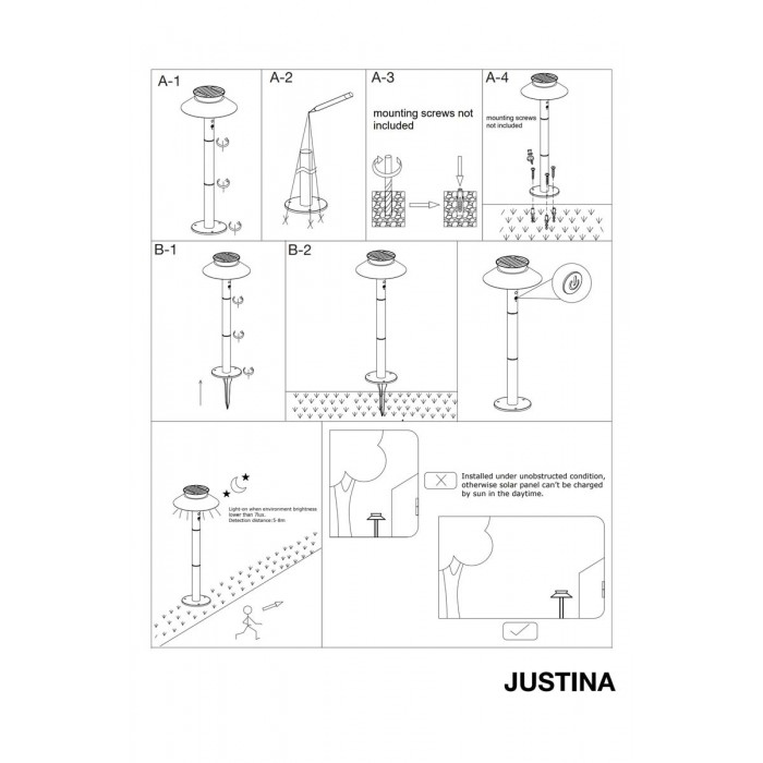 Вуличний світильник на сонячній батареї Nordlux 2418098003 Justina LED 1x5W 3000K 400Lm IP44 чорний