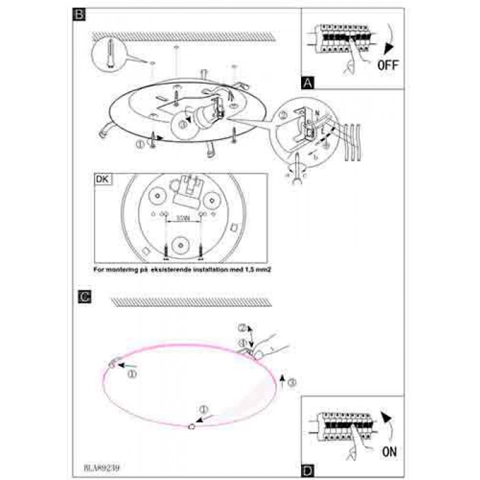 Клас енергоефективності : Світильник сумісний з лампами всіх класів з А++ по Е, постачається без ламп