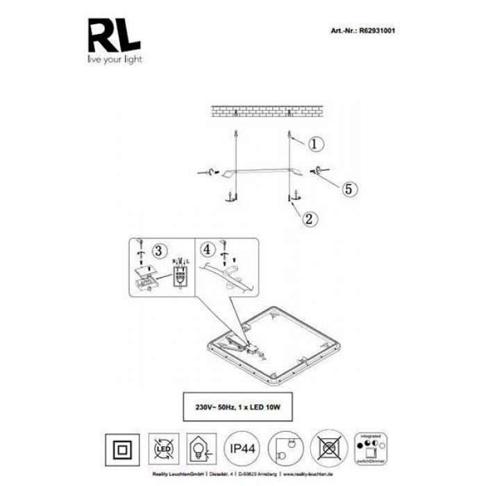 Світильники виробництва компанії REALITY славляться своєю якістю. Світильник серії CAMILLUS має оригінальний дизайн, підходить для інтер'єрів ванних кімнат. REALITY R62931001 CAMILLUS зроблений з якісних матеріалів: Акрил, пластик.Характеристики REALITY R62931001 CAMILLUS: