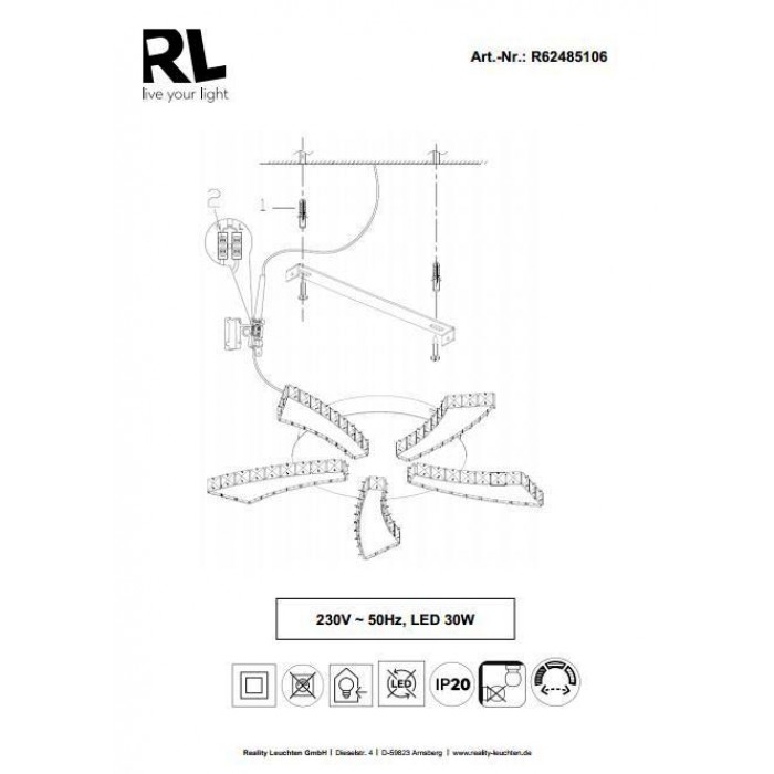 Світильники виробництва компанії REALITY славляться своєю якістю. Люстра серії PHIN має оригінальний дизайн, підходить для інтер'єрів в стилі модерн, хай-тек. REALITY R62485106 PHIN зроблений з якісних матеріалів: пластик, метал. Цей світильник створить комфортну і затишну обстановку у Вашій кімнаті.Характеристики REALITY R62485106 PHIN: