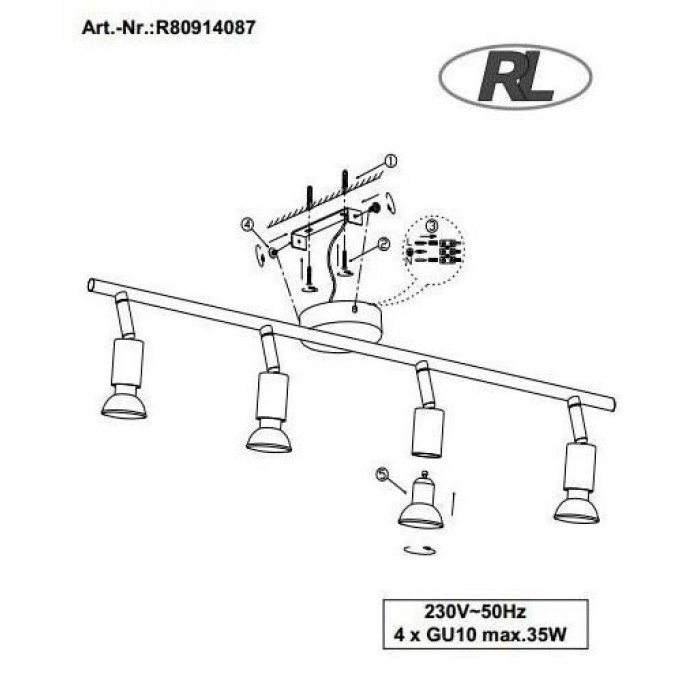 Джерело світла: excl. 4 x GU10, max. 35 W