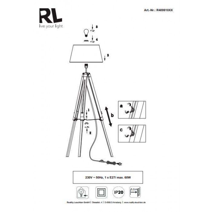 Світильники виробництва компанії REALITY славляться своєю якістю. Торшер серії Tripod має оригінальний дизайн, підходить для інтер'єрів в стилі модерн, з абажуром. REALITY R40991001 TRIPOD зроблений з якісних матеріалів: тканина, дерево. Цей світильник створить комфортну і затишну обстановку у Вашій кімнаті.Характеристики REALITY R40991001 TRIPOD: