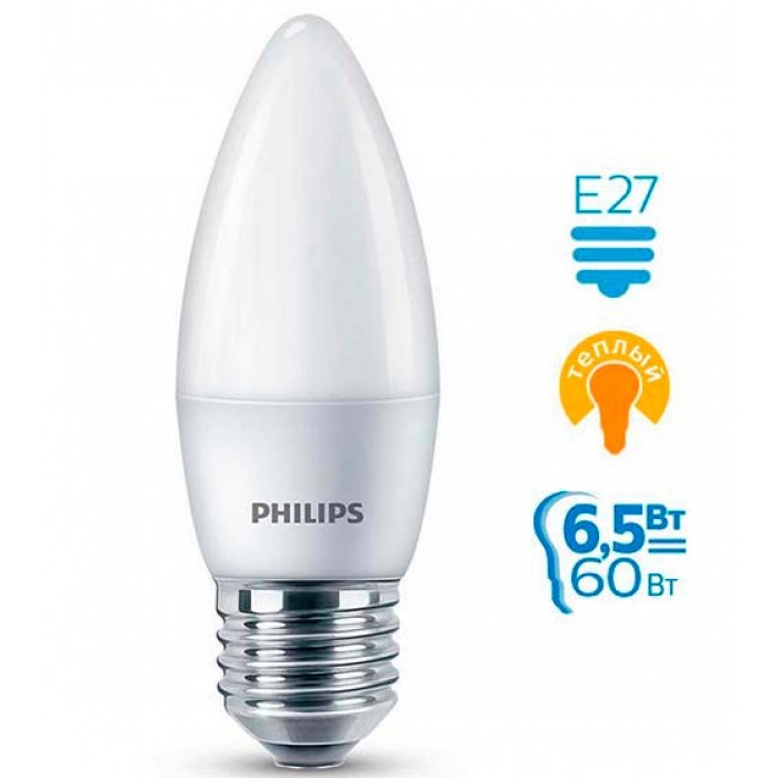 Опис Philips ESS LEDCandle 6.5-60W E27 827 B38NDFRRCA 929001811407