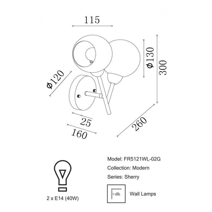 Розміри бра FR5121WL-02G