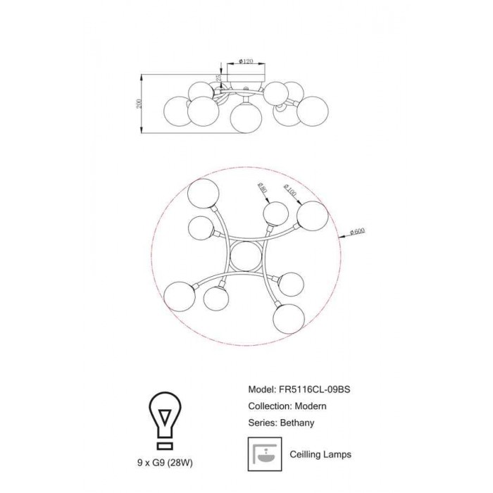Розміри люстра FR5116CL-09BS