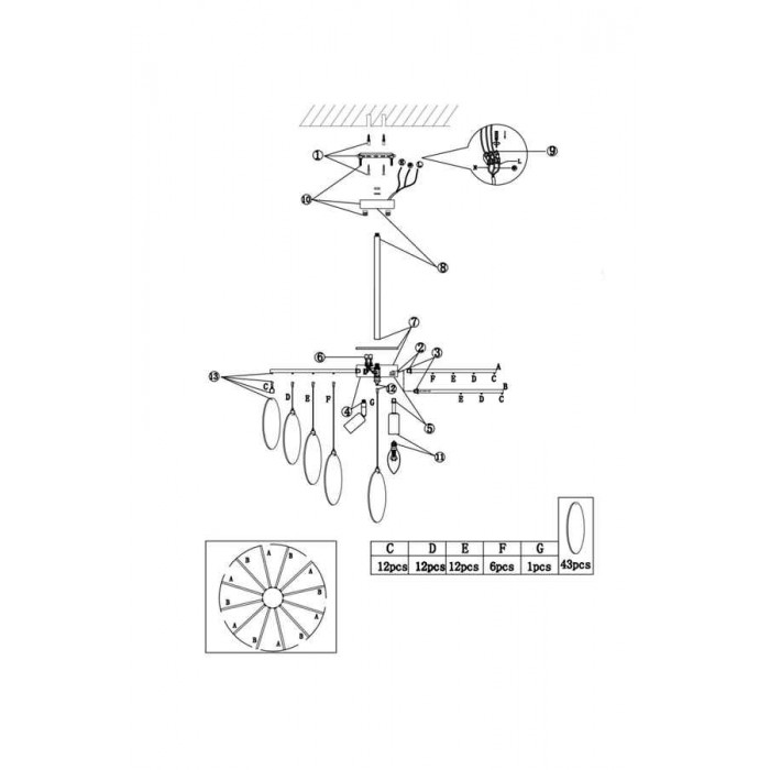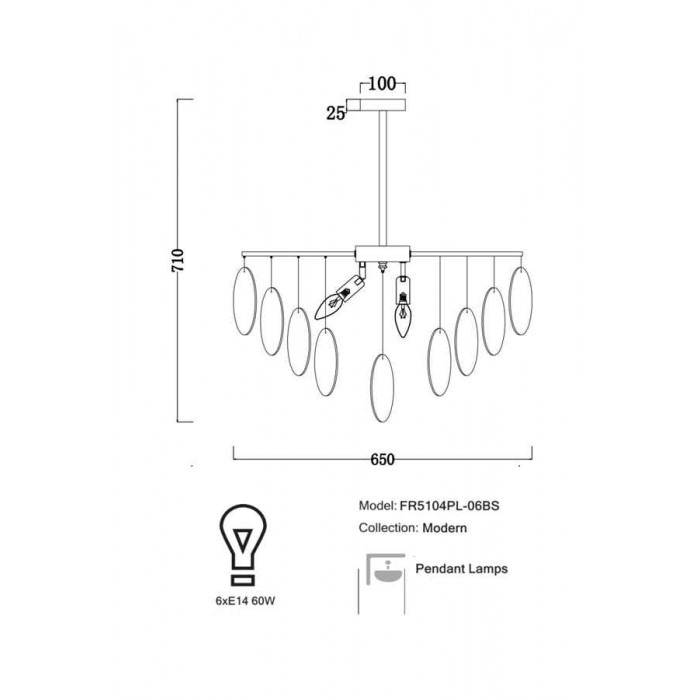 Джерело світла: 6 x E14 (60Вт), купуються окремо