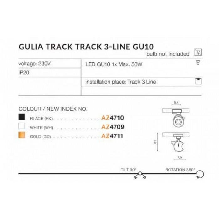 Опис Azzardo GULIA TRACK 3 LINE GU10 BK AZ4710: