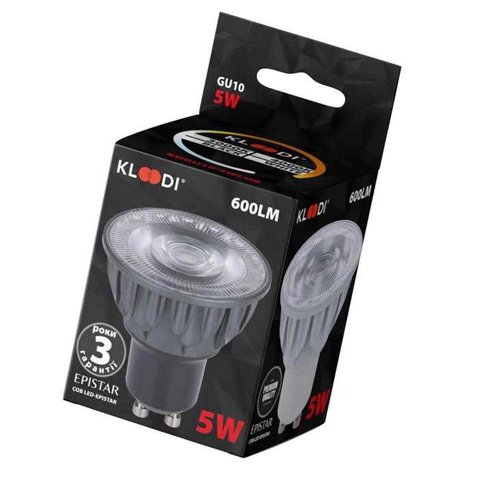 Опис Kloodi KDGU10-5WCOB 3K WH MR16 5W 3000K GU10, 60 град.: