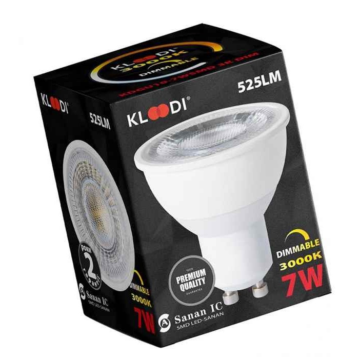 Опис Kloodi KDGU10-7WSMD 3K DIM MR16 7W 3000K GU10 Dimmable, 60 град.: