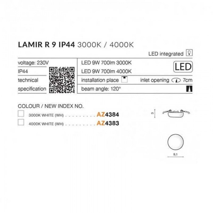 9,1Світильник стельовий Azzardo AZ4392 Lamir R Dimm LED 1x22W 4000K 1800Lm IP44 білий