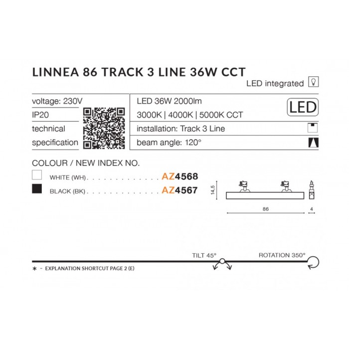 Характеристики Azzardo AZ4567 Linnea 86 TRACK 3LINE 36W CCT BK: