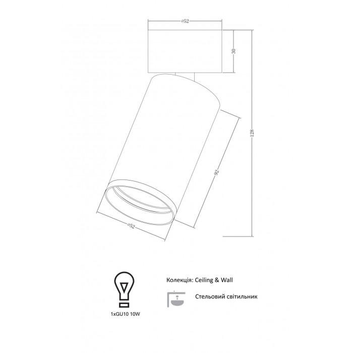 Джерело світла: 1шт х 10Вт (GU10).